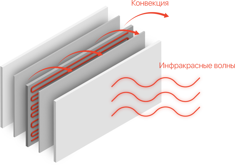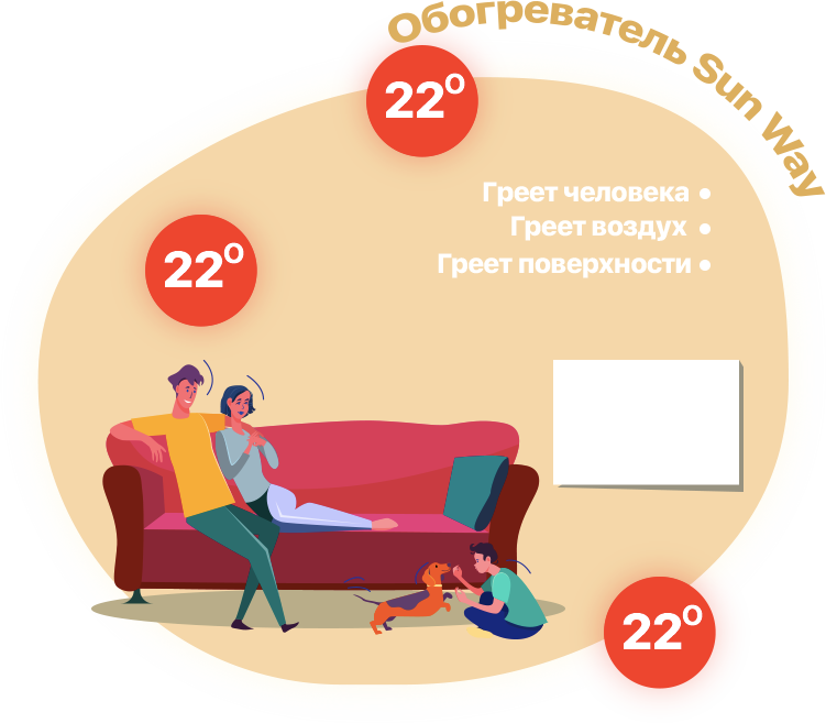 С обогревателем Sunway вы получите равномерно прогретое помещение за счет инфракрасного излучения и конвекции (которая образуется между тыльной стороной прибора и стеной на которую он установлен)